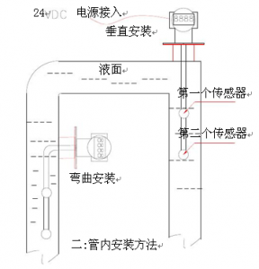 3: 管道安裝時需讓液體從最下面?zhèn)鞲衅髦逻M入液體,或者從最上面?zhèn)鞲衅鞯纳厦孢M入液體,不要從中間進入液體。管道安裝通液體時,管道閥門或者彎頭部分至少留出30CM液體緩沖距離。