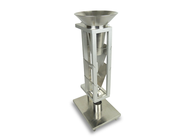 1、上部組合漏斗:由兩個不銹鋼圓錐形漏斗裝配而成,其間一段圓柱隔開,并放入一個孔徑為1.18mm的不銹鋼篩網(wǎng)。